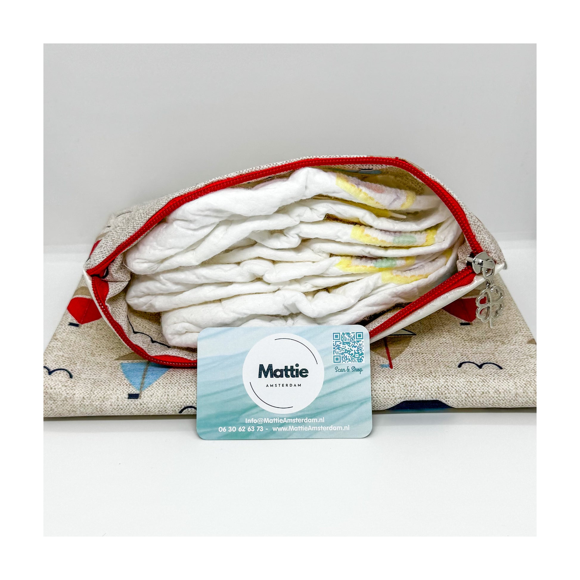 - Wanneer gevuld, dient het luierzakje ook als kussentje als het kindje erop ligt.