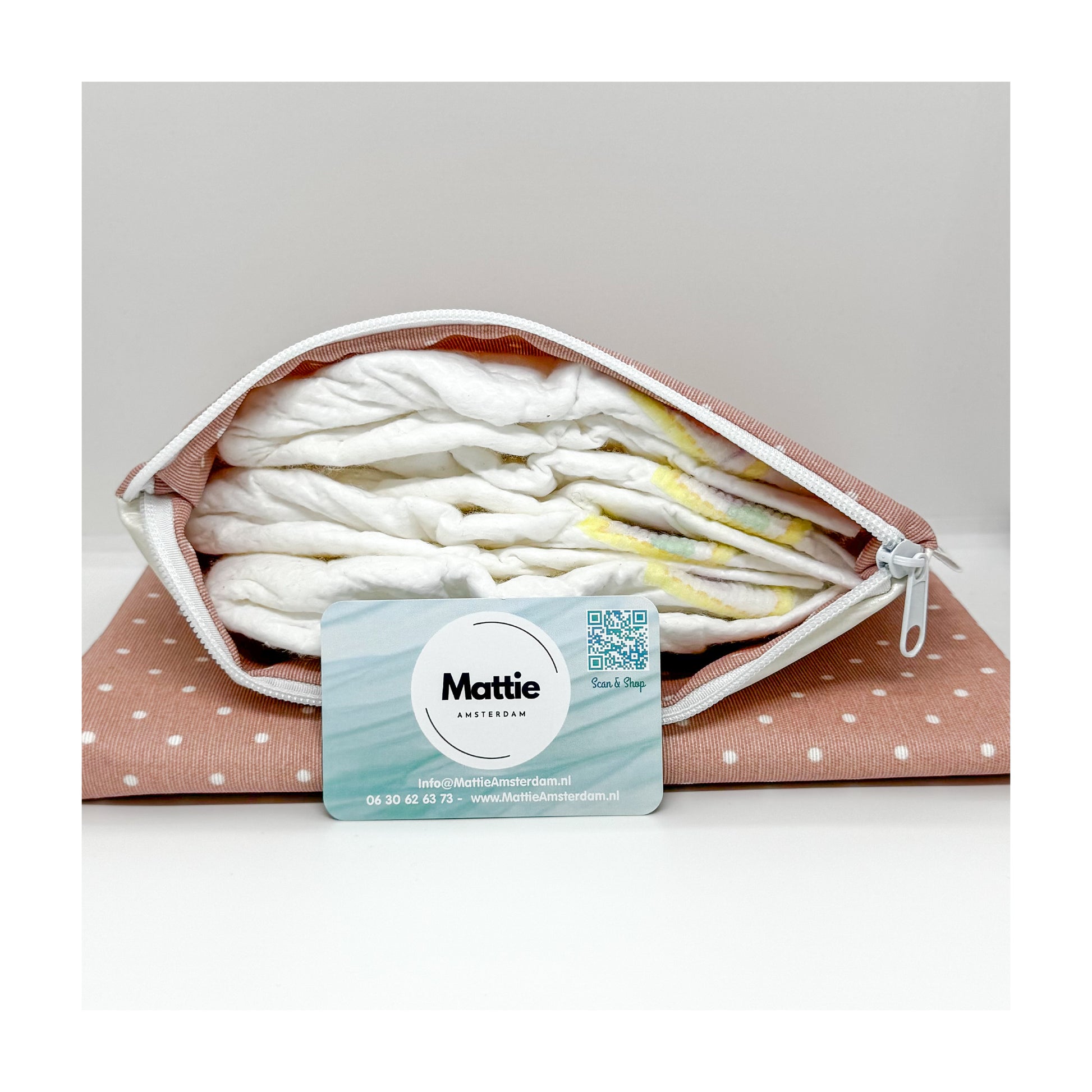 - Wanneer gevuld, dient het luierzakje ook als kussentje als het kindje erop ligt.